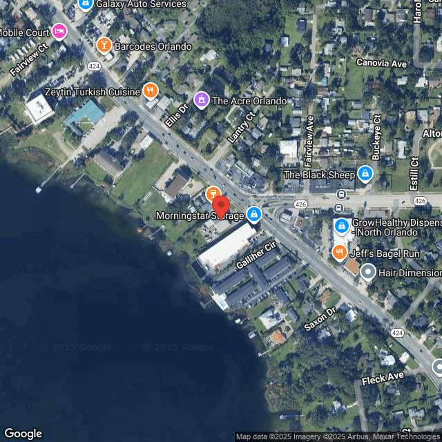 Situated along Edgewater Drive at the terminus of the three-leg intersection where Fairbanks Avenue ends. This area sees high traffic counts, with +22,300 CPD on Fairbanks Avenue and +22,500 CPD on Edgewater Drive in 2023. Nearby major thoroughfares include Lee Road to the north, US 441 to the west, and I-4 to the east, all less than 1 mile away. 7,023 SF Spacious office building with attached warehouse Excellent visibility with 125 ft of direct frontage on Edgewater Drive Traffic signal at the entrance/exit allows easy access to the front parking lot 15 parking spaces, including a Tesla charging space, with additional parking in the rear Includes 1 roll-up door, a covered outdoor storage area with gate, and boating dock overlooking Lake Fairview in the back 4 bathrooms total, including one with a tub and shower combo 1.27 Acres zoned C-2 Lease term is for a maximum of 3 years. Office Space Layout & Features: Spacious open area with high ceilings and lots of natural light, complemented by mezzanines on either side Suspended track lights at the center of the space for flexible lighting Large private office area on the ground floor Full kitchen including a fridge, stove, sink, and dishwasher Warehouse Space Layout & Features: Features a roll-up door with workshop areas, mezzanines, and built-in shelving units on either side Gated space under mezzanine for additional secure storage and housing of power panels Excellent lighting throughout, with ample lighting fixtures and additional sunlight through light-admitting roof panels